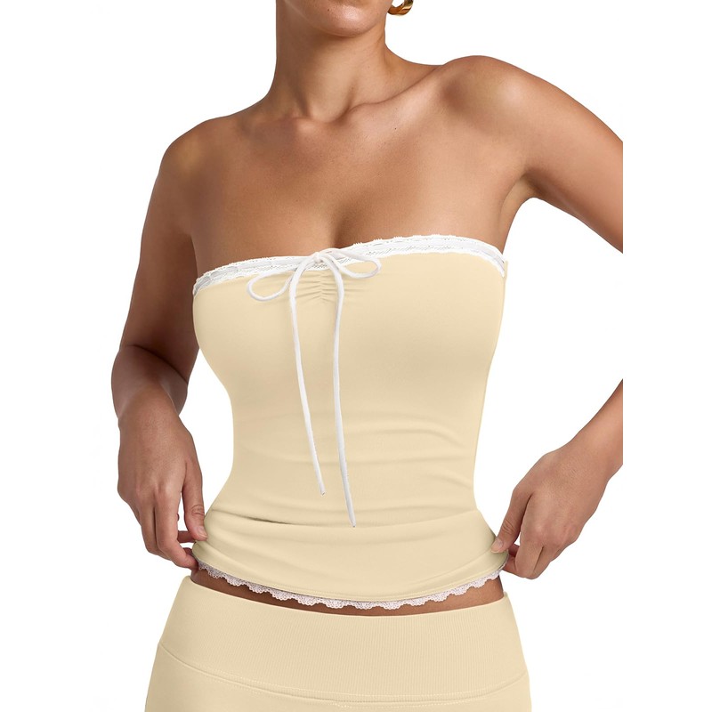 - 🎀 Sexy Ruffled Neckline & Lace Details | Y2K trendy tube top features ruffled collar, delicate lace trim, and a cute bow at the bust. Combines sexy allure with playful charm for going out or date night.