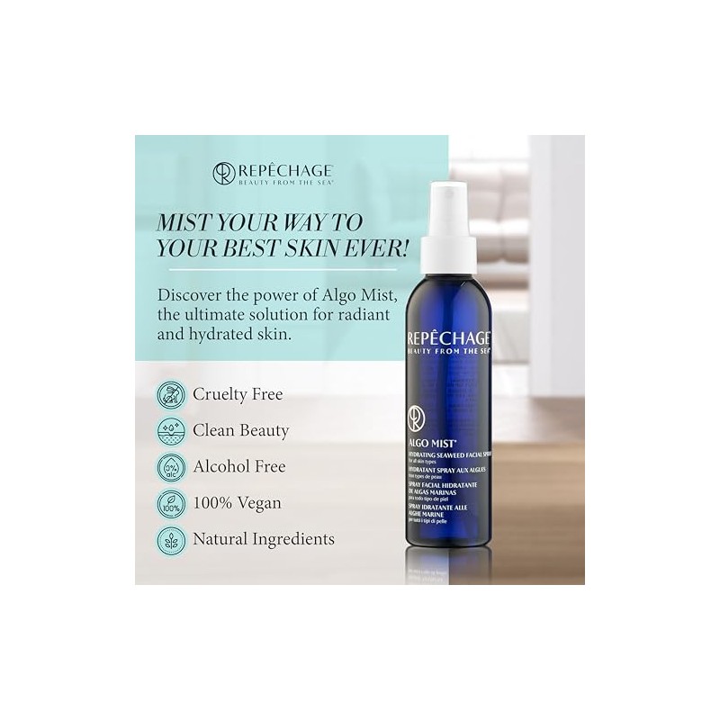 Repechage Algo Mist Hydrating Seaweed Facial Spray for All Skin Types - Hydrating Face Mist Travel Size, Aloe and Vitamin C Infused Keeps Skin Glowing, Hydrated, Refreshed and Nourished, 2 fl oz.