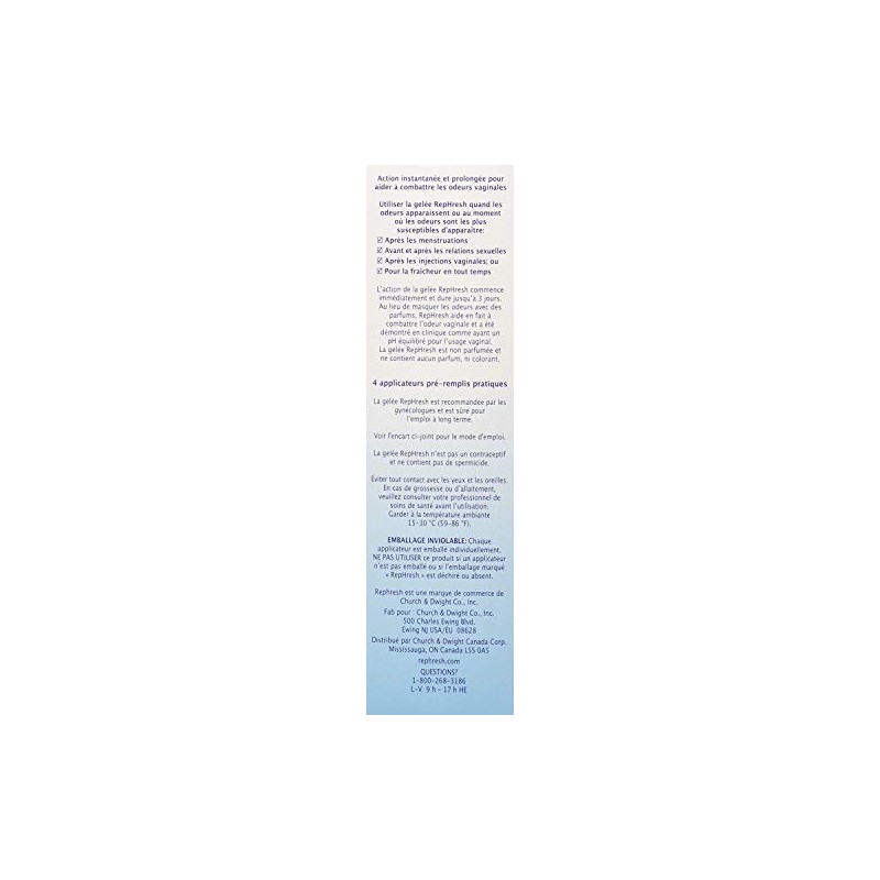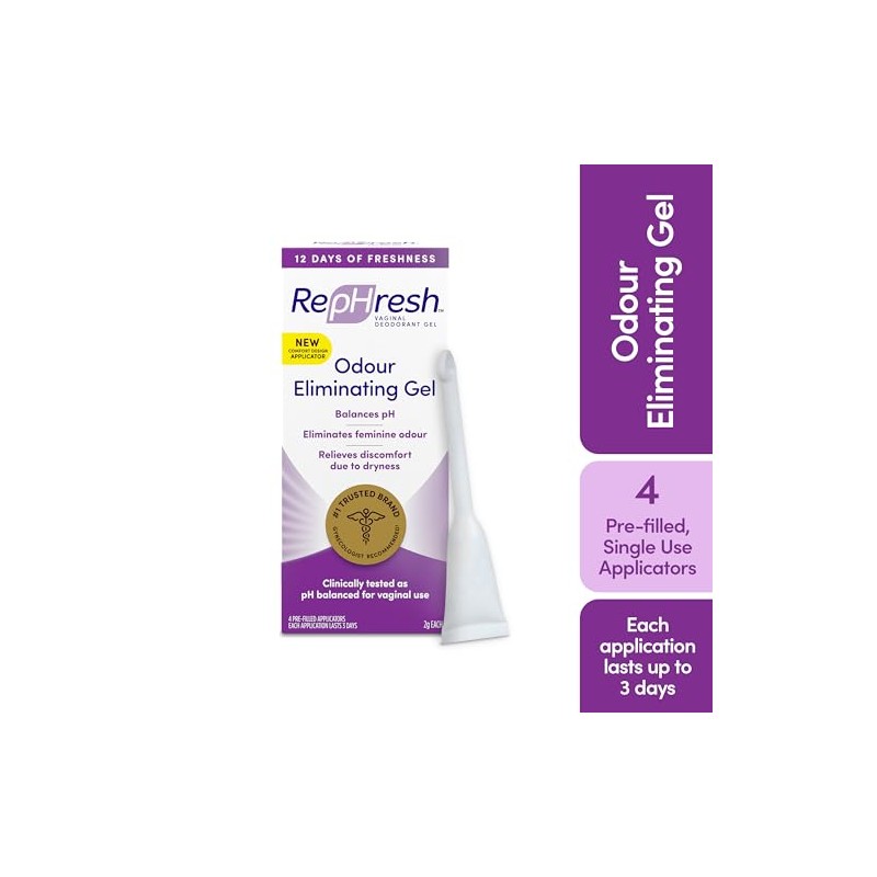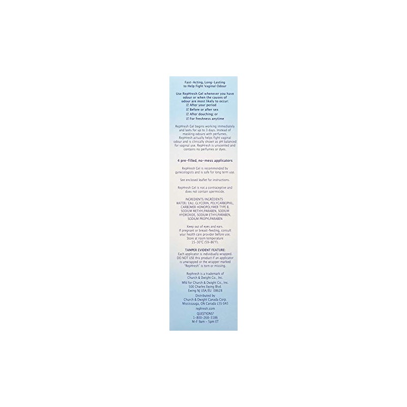 Put a Period After Your Period. The thing about your period, it's not over when it's over. Odour can linger and a yeast product won't resolve it. But RepHresh Vaginaӏ Gel goes to work in seconds to help eliminate the cause of odour. RepHresh Odour Eliminating Vaginal Gel is designed to help you feel comfortable and fresh. It's specially formulated to help maintain a healthy pH balance, which can soothe feminine irritation. RepHresh Gel also acts to eliminate feminine odour, leaving you fresh and confident. RepHresh Gel is safe for long term use and is clinically shown to maintain healthy vaginal pH. It includes four pre-filled applicators for your convenience and hygienic use. This gel is perfect for before or after sex, after your period or after you douche. Take charge of your feminine health with RepHresh. • Clinically Shown as pH Balanced for Vaginaӏ Use • Eliminates Feminine Odour for up to 3 Days • Relieves Feminine Discomfort • Gynecologist Recommended