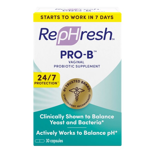 RepHresh? Pro-B? is a feminine probiotic supplement taken orally once a day to balance yeast and bacteria*. With 5 billion beneficial bacteria per serving at time of manufacture, RepHresh Pro-B Feminine Probiotic Supplement contains patented and clinically tested strains of lactobacillus: L. rhamnosus (GR-1?) and L. reuteri (RC-14?). This proprietary probiotic blend balances yeast and bacteria to maintain feminine health*.