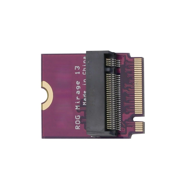 - Expansion board for ROG Mirage 13 gaming laptop device for upgrading 2230 size M.2 SSD drives to 2280 size NVME M-Key 5pin M.2 PCI-E 4.0 SSD drives. The expansion board features a 180 degree reversed gold finger purple design to better fit the body of ROG notebooks, while providing higher transfer speeds and larger storage capacity to meet users' needs for high speed, high capacity storage.