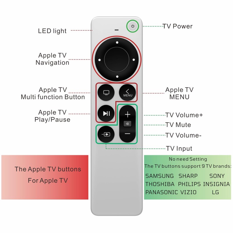 - 【No Voice】No Voice control. This is an IR remote (NOT Bluetooth/RF), line-of-sight required. NOT Siri remote, NO Touchpad function. Not for A-Pod/H-Pod. [For those you will need to use the original remote with Bluetooth, not IR remote!]