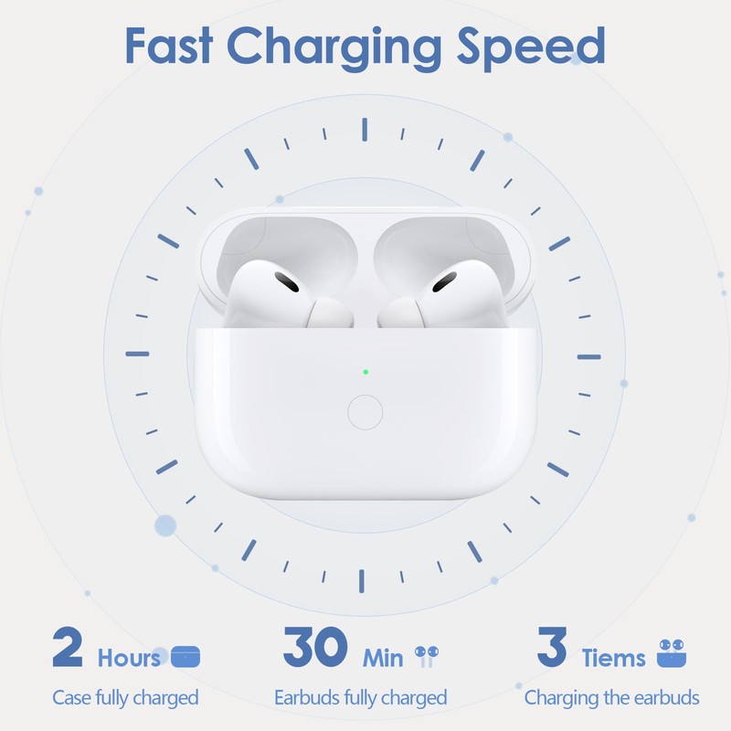 • Quick Charging: The charging case has a 600mAh internal lithium battery. Battery case charging time only 2.5 hours. It can fully charge your Air pod over 3-4 times for gives you 6 hours listening time. You don't have to worry about the power shortage after going out