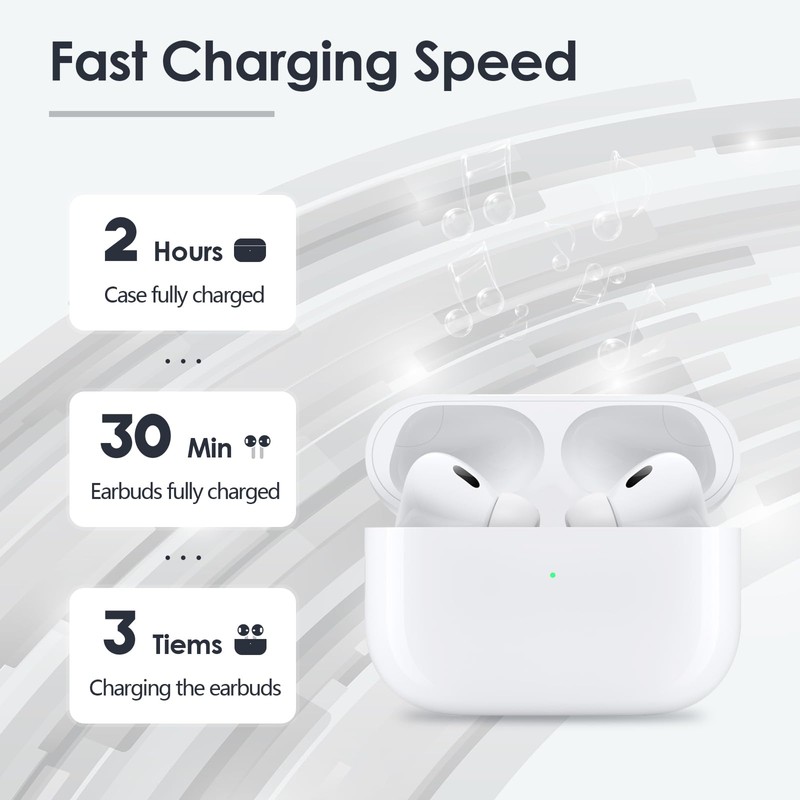 • Support voice prompt: air pods pro 2nd generation charging case has beep sound function. When opening the lid, Bluetooth pairing and charging will make a sound "chin" (Note: Long press the sync button 5s to close)