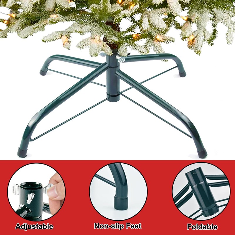 Introducing our Artificial Christmas Tree Stand, the perfect accessory for your holiday season. This folding Christmas tree base is specifically designed for 4 to 6-foot Xmas trees, providing a sturdy and reliable support system. Made from high-quality metal, this Xmas tree stand is not only durable but also visually appealing with its classic green color.