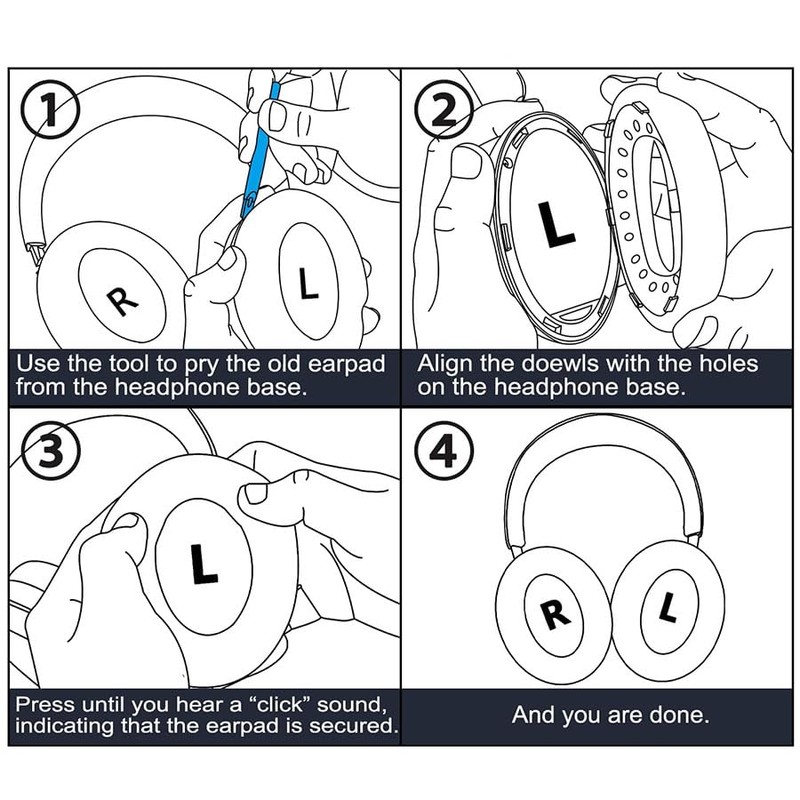Perfect Fit:Crafted specifically for the Bose QuietComfort Ultra Headphones,the ear replacement ensure a seamless fit and optimal comfort.They are not compatible with other Bose models. Please confirm your headphone model before purchasing. How to replace the headphones ear cushions? 1. Prepare the headphones you need to replace. 2. Rip the bad earpads right off. 3. Remove the sticker on the back. 4. Stick the new dust covers. 5. Take the new earpads and align them with the tabs and press them in with a little force.