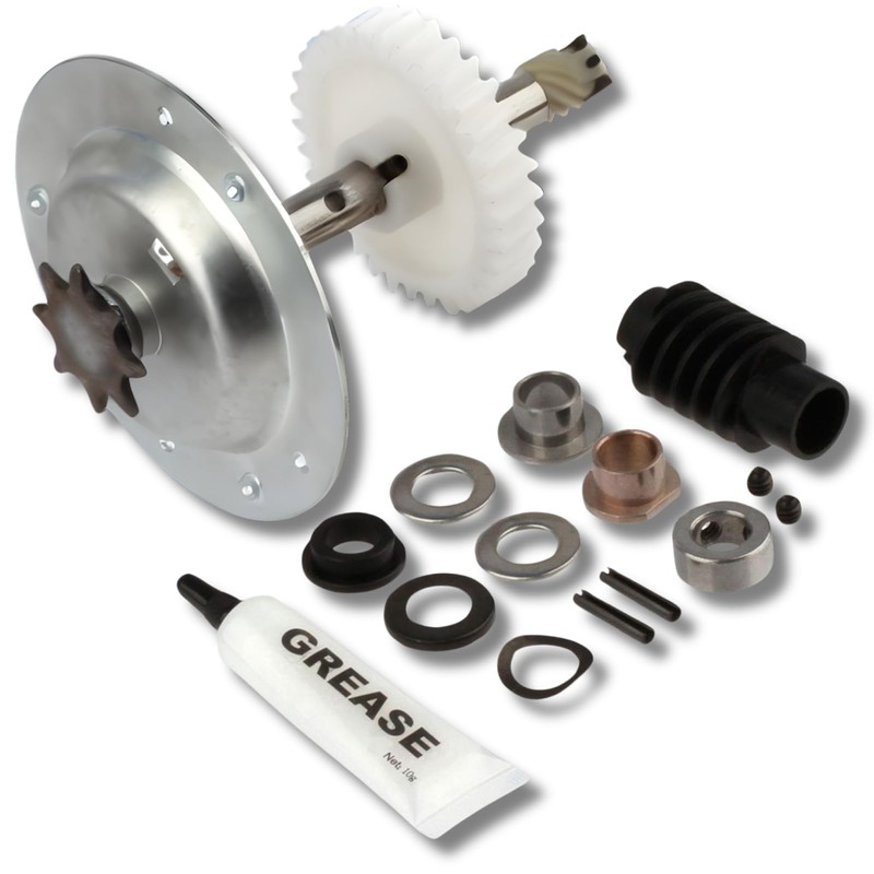 - includes gear and sprocket, worm gear, grease, motor shaft & sprocket bearings