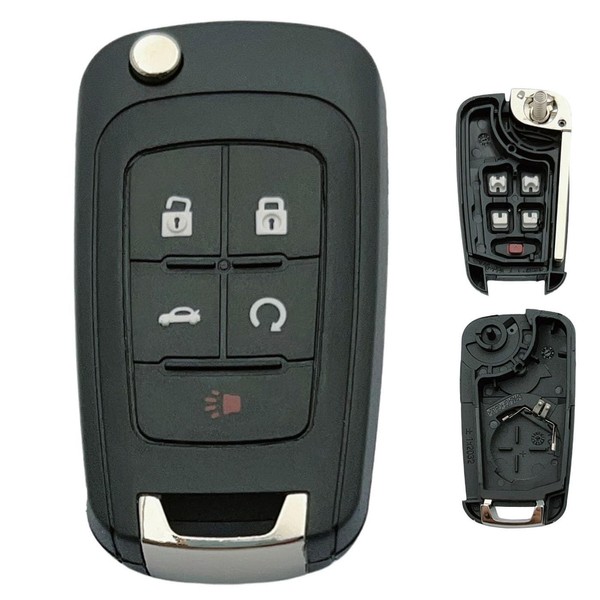 Replacement Key Fob Shell Case Fits for Chevy Cruze Malibu Equinox Sonic Impala GMC Terrain Buick Lacrosse 2011-2016 Keyless Entry Remote Control 5 Button Flip Key Pad Cover (5 Button)