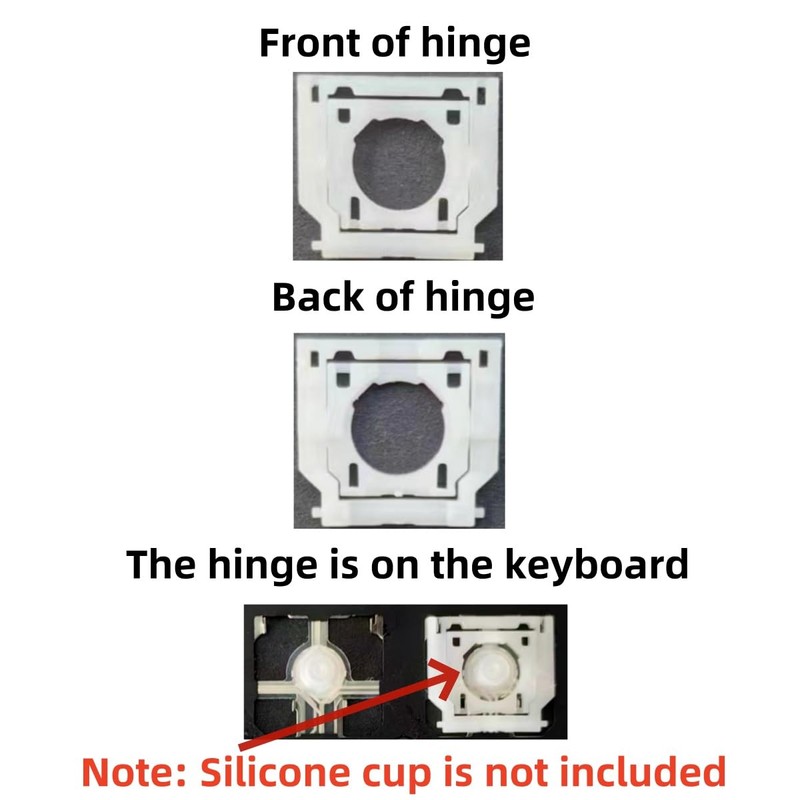 - Easy and quick installation, no need to disassemble the machine. (Installation tips If the white hinge is not damaged, you can directly install the key cap. If the hinge is damaged, please install the white hinge first, and then install the key cap)