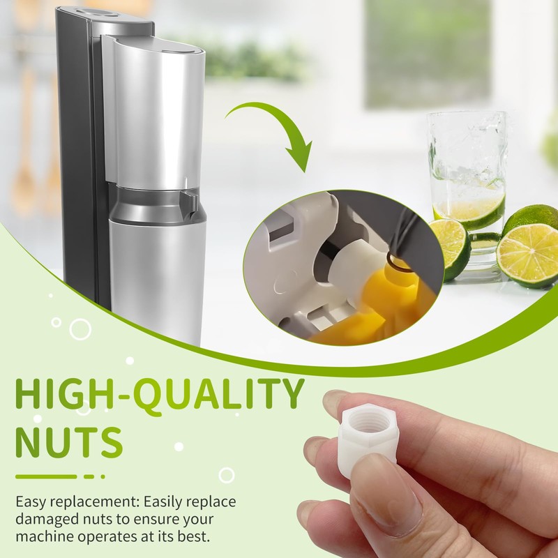 - EASY INSTALLATION Installation of the replacement nut is quick and straightforward. When replacing, you need to connect the CO2 hose to the replacement nut and then tighten it. Even beginners can easily replace them without tools, making the maintenance of your Sodastream machine child's play.