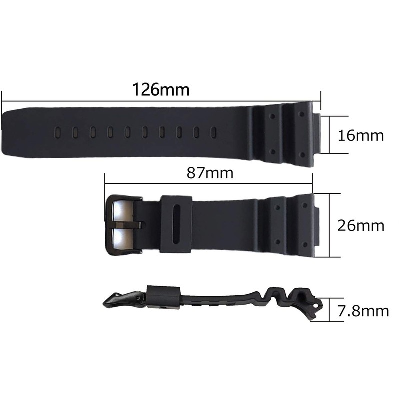 • [Aftermarket / Compatible Product] Replacement band for Casio/G-Shock Compatible Lug Width: 16mm Package Contents: Watch band x 1, spring bar x 4, spring bar remover x 1. Easy to install, comes with spring bar remover, easy to remove and install