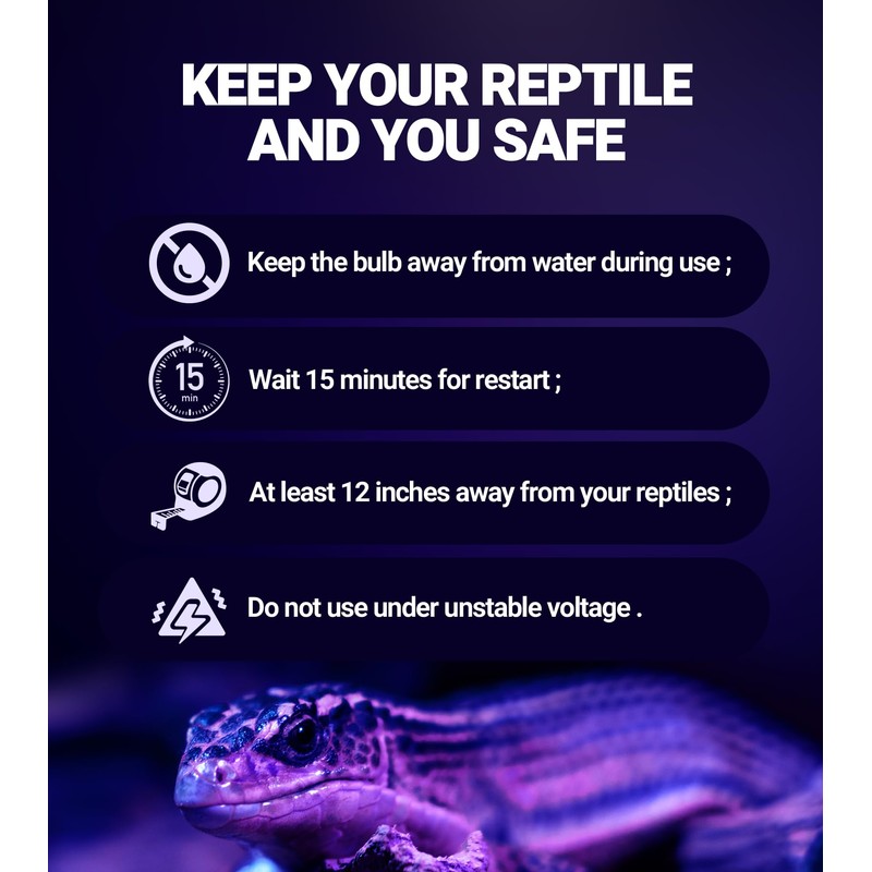 -Compatible with a variety of reptiles, such as turtles, bearded dragons, geckos, iguanas, chameleons, amphibians, snakes, frogs, and more, our reptile heat lamp is a must-have for any reptile owner. Invest in the well-being of your reptiles with our heat bulb, the ideal choice for maintaining optimal temperature and promoting their health. Order now and create a cozy, natural environment for your reptile.