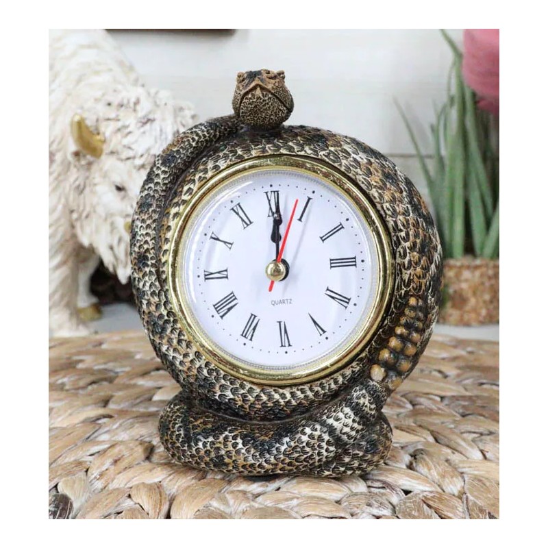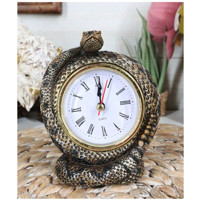 Reptile Coiled Diamondback Rattlesnake Serpent Desktop Table Clock Figurine