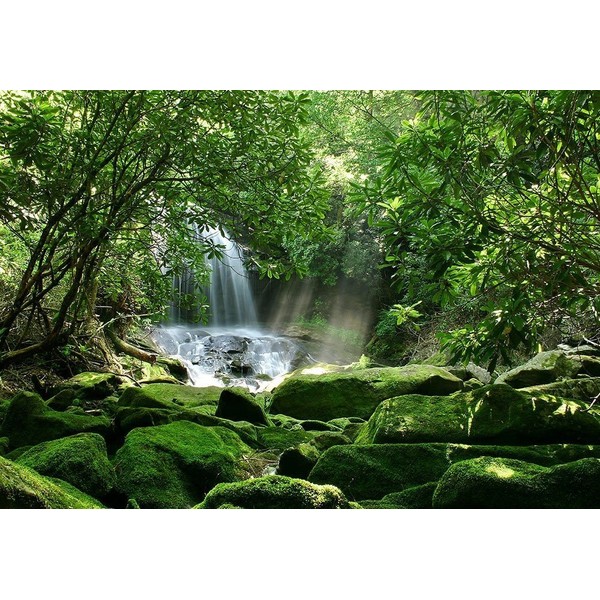 Reptile Habitat, Terrarium Background, Sunny with Green Trees, Waterfall & Mossy Rock (Various Sizes)