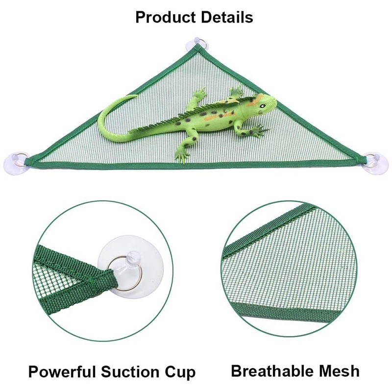 - 【Material】Made of breathable soft nylon material, strong and durable. Connected by the strong suction cups to ensure your pet is safe. Reptile hammocks are suitable for bearded dragons, hermit crabs, lizards and others. Small animal size: triangular shape, side length is 33 x 33 x 48.3 cm.