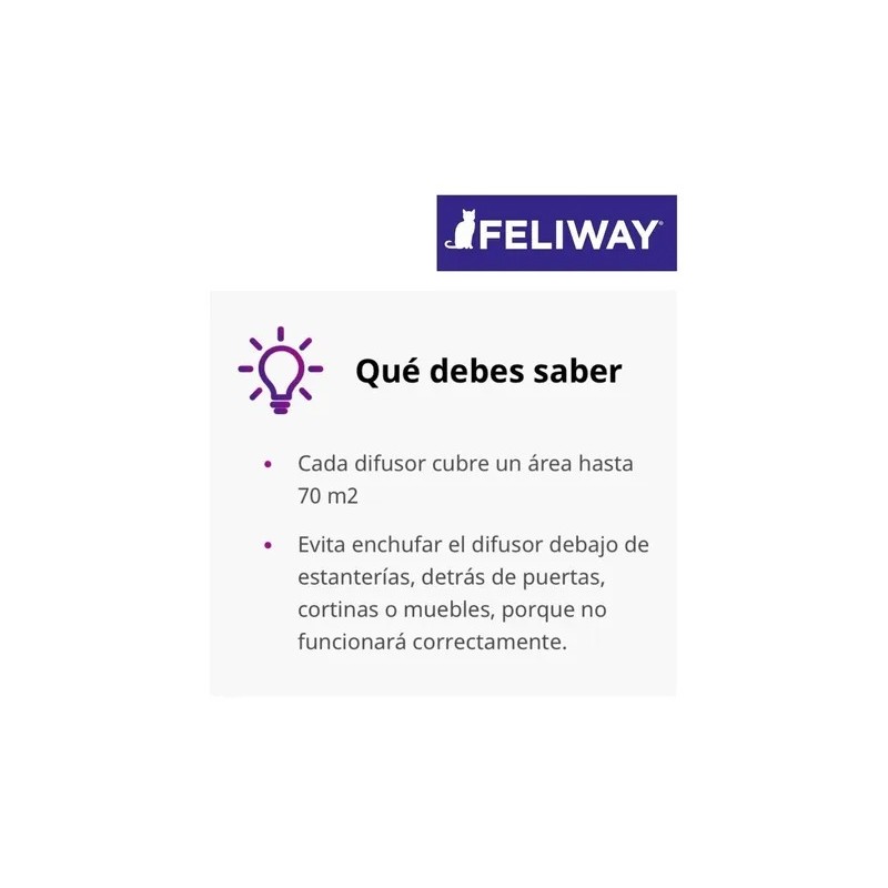 Utiliza FELIWAY CLASSIC Recambio cada mes para continuar proporcionando un entorno seguro y agradable en casa, donde tu y tu gato seréis siempre "Felices Juntos".