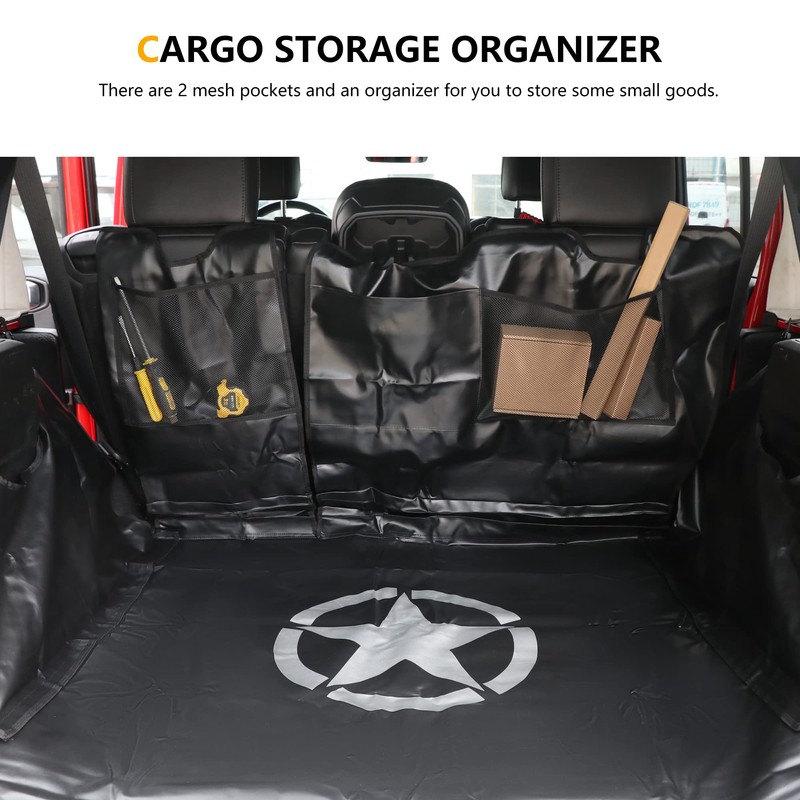 - FEATURE--The pet cargo liner for 2007-2024 Wrangler JK JL is made of quality oxford, which is WATERPROOF / SCRATCH PROOF / STAIN RESISTANT/ EASY TO CLEAN.