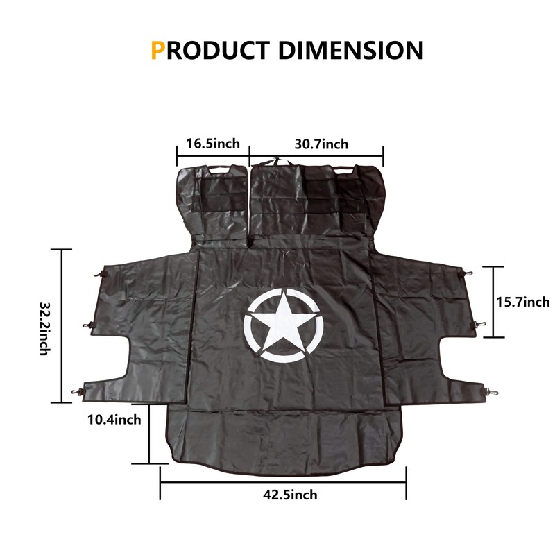 - EASY TO INSTALL--Dog cargo liner cover for Jeep Wrangler JK JL can be easily installed by 3 adjustable bands, 6 stainless steel buckles, and 6 quality plastic side hooks. No drilling nor stickers are required.