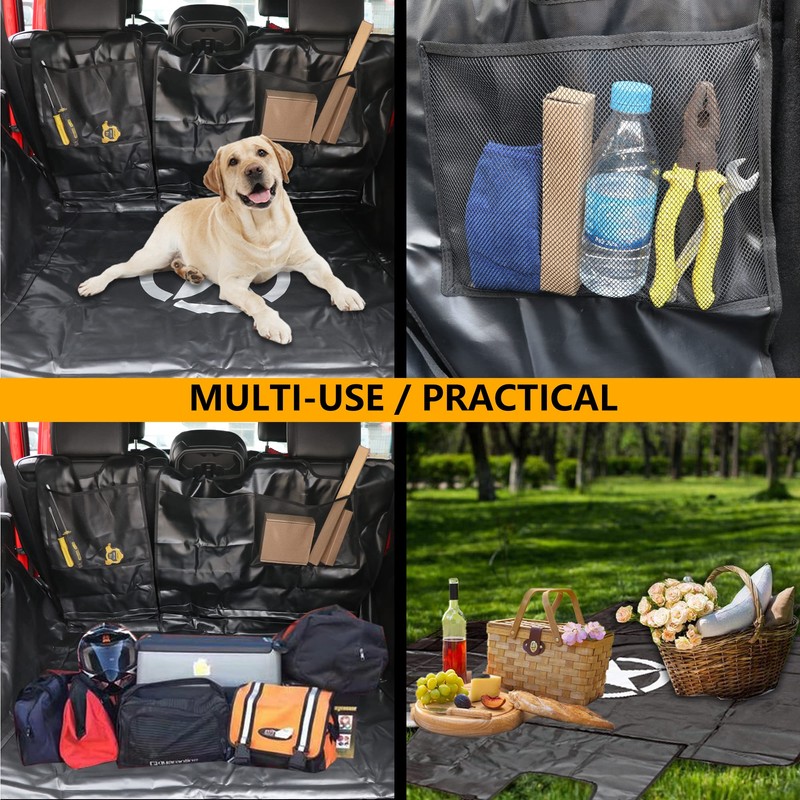 - APPLICATION--JK JL cargo mat can be used for car seat covers, pet seat covers, cargo mats, and rear trunk organizers, providing maximum protection & cleanliness for the car interior. Also can be used for a family picnic mat, offering you a great space for your family.