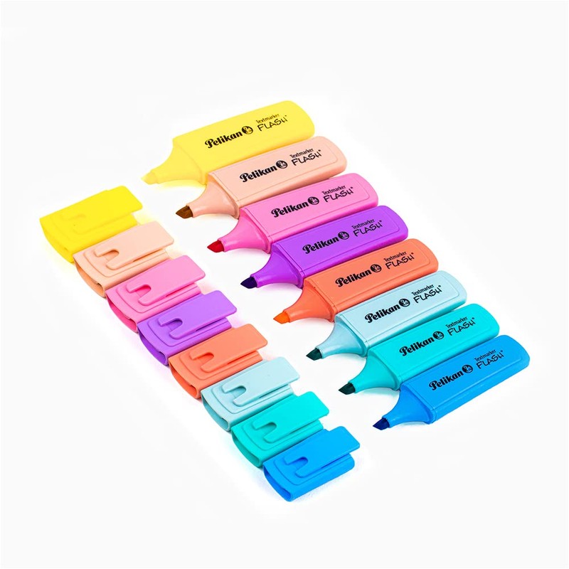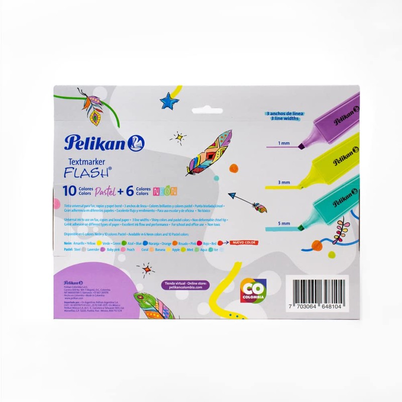 - Contiene 16 piezas que esta conformado por 10 marcatextos pastel y 6 neón.