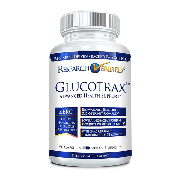 Research Verified Glucotrax - Berberine, Chromium Picolinate, Cinnamon, Gymnema - 1 Month Supply - 60 Capsules