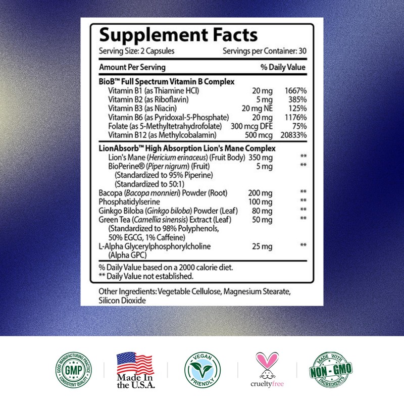 - A Winning Combination - Stimulate the growth of brain cells and help with symptoms of memory loss with a blend of Lion’s Mane mushroom and Bacopa Powder.