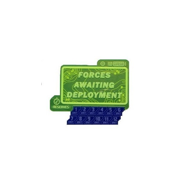 Place the neon green Heads Up Display plaque in your deployment zone at the start of the game to serve as a blazing reminder of your off table units status. You will never forget to roll for those reserves again! The set also includes 12 unit marker tokens, they are perfect for marking off-table units, tracking which units are in reserve, or as hidden deployment markers.
