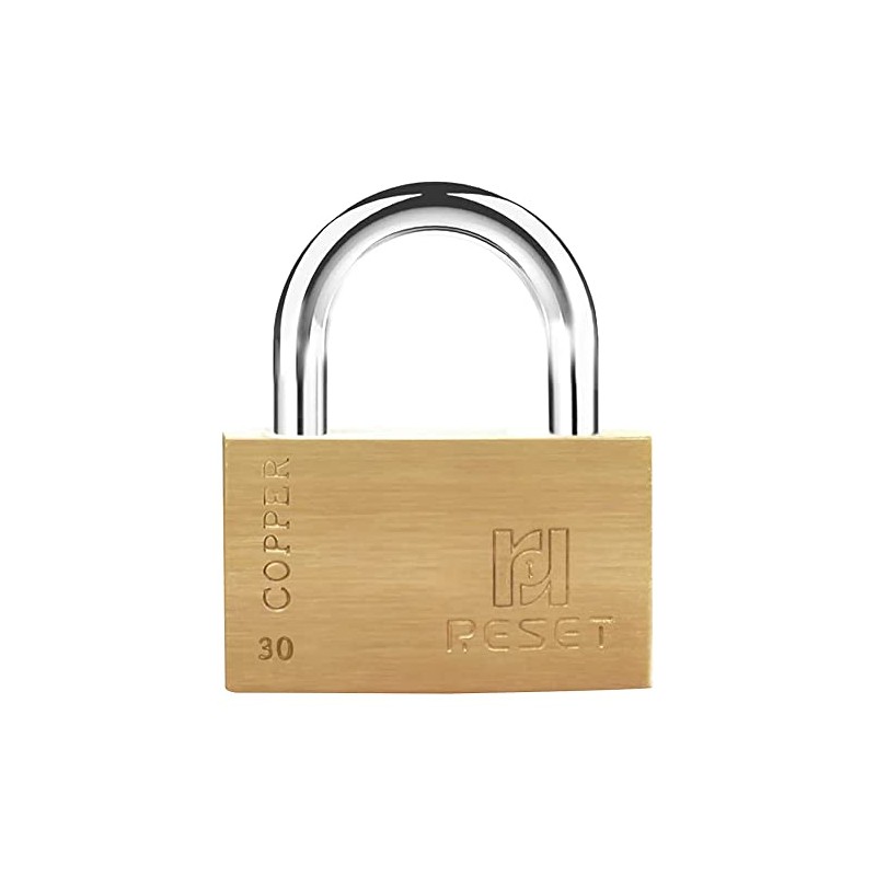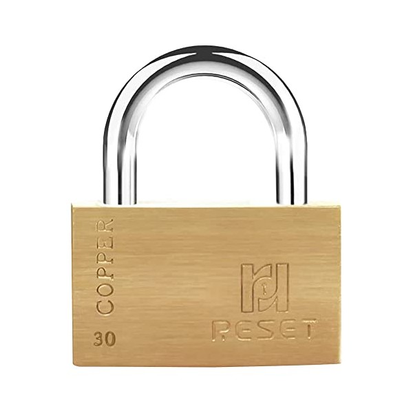 RESET-290 Brass Small Keyed Different Padlock,30 mm Tiny Brass Padlock with Stainless Steel Shackle,3 Keys,Waterproof Rustproof,Locker Lock with Key,Brass