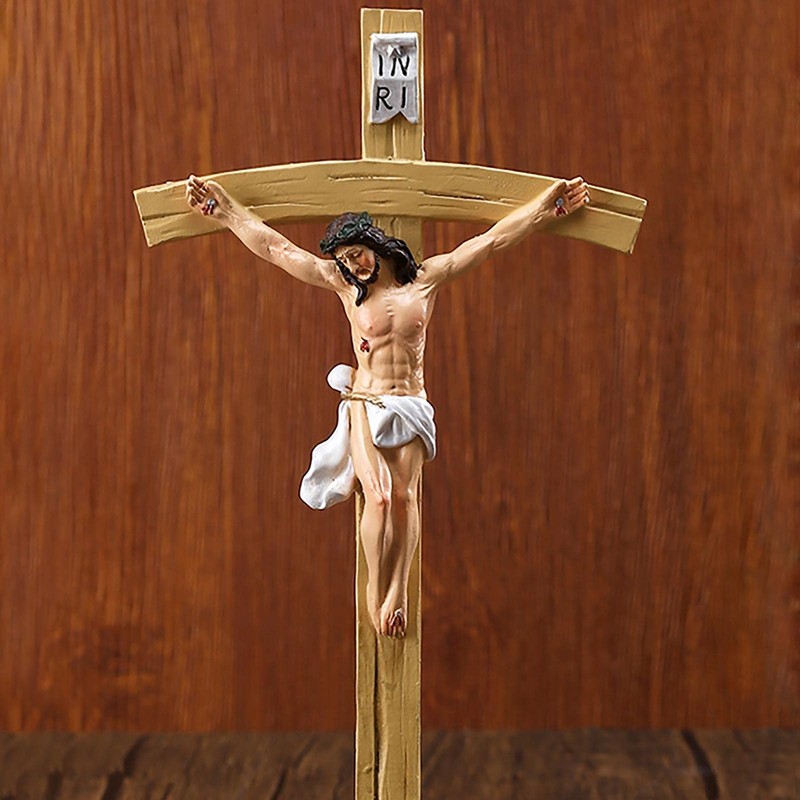 Resin Jesus The Cross Statue Wall Hanging Art Crucifix for Home Decor, Jesus Christ Cross Family Ornaments, Christian Catholic Desktop Decoration, Miniatures Figurines Religious