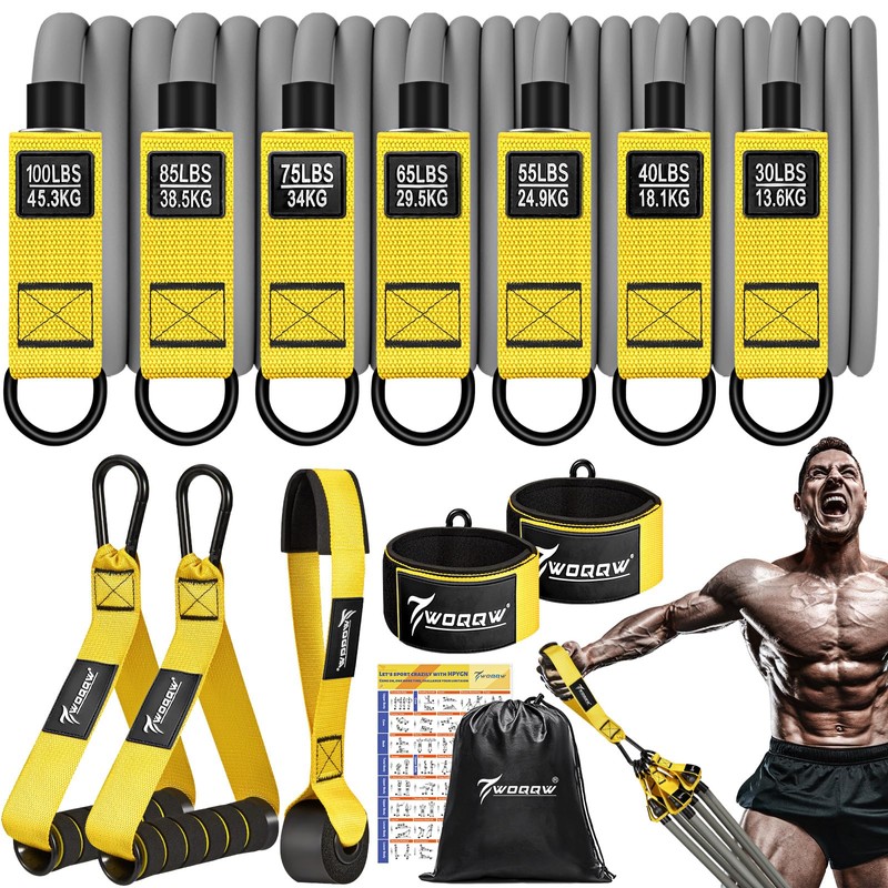 - 【Resistance Bands with Handles】WOQQW resistance bands feature ultra-heavy-duty exercise handles made from military-grade ABS material, thick premium sponge padding, and reinforced braided nylon straps. With an impressive weight tolerance of up to 1200 lbs, they ensure a secure and comfortable workout. The durable high-quality sponge material is breathable, sweat-absorbent, and non-slip. The super-wide design fits all hand sizes, enhancing your fitness experience
