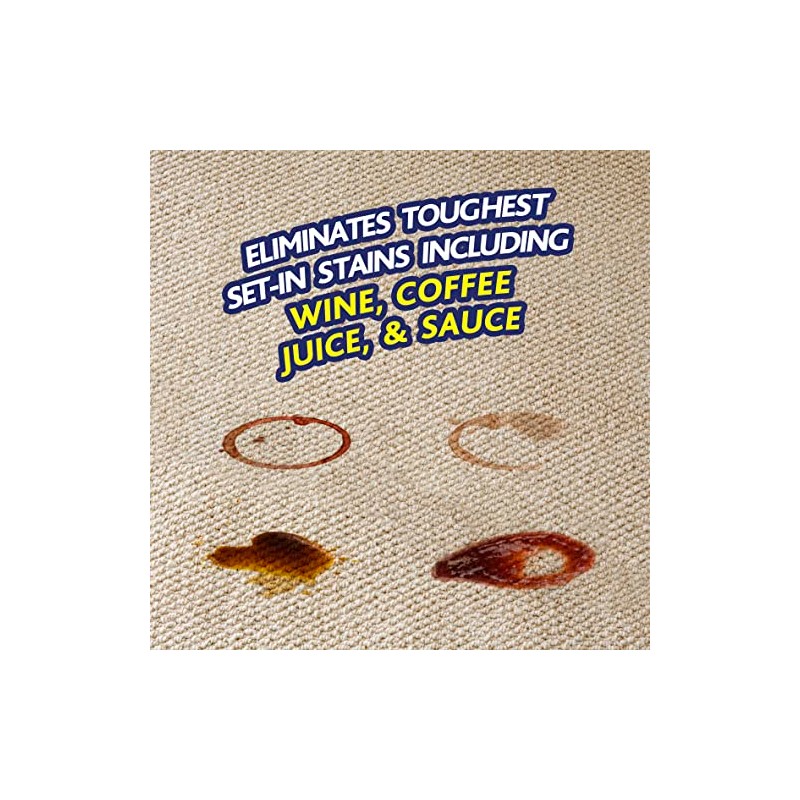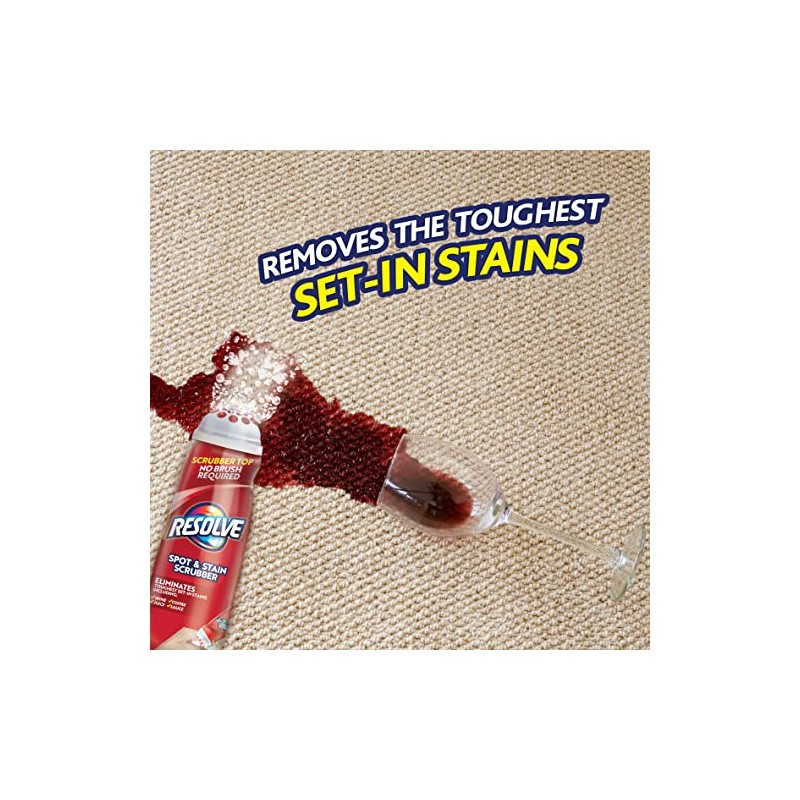 From the #1 carpet cleaning brand* comes a one and done convenient format to address all of your spot treatment needs. The Resolve Carpet Spot and Stain Scrubber removes tough set-in cola, food grease, gravy, & pet stains the 1st time! Eliminates toughest set-in stains including wine, coffee, juice, and sauce. Use easily on rugs, carpets, and other common areas. The scrubber nozzle precisely targets stains with no brush required. Stains are lifted in just 5 minutes. How to use: twist open cap, from a distance of about 3 inches, squeeze the product solution onto the stain. Ensure product covers the stain. Rub stain (from outside to in) in circular motion with scrub head. Wait 5 minutes. Blot or rub gently with a clean, damp, colorfast cloth or sponge. Rinse sponge or cloth and repeat, as necessary. If ring appears, apply additional solution to ring and repeat process. *Based on sales data ending 52 weeks 09/17/22 unit sales of manual and machine formulas (latest Nielsen data released)