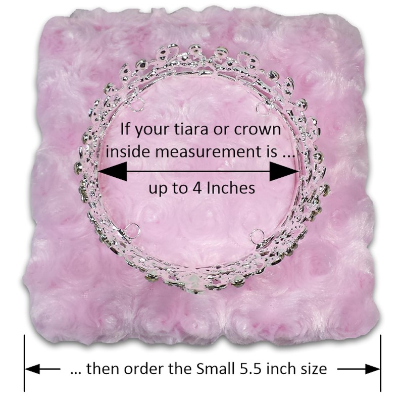- HINT: You can confirm that the pillow size you have selected is correct for your needs by cutting a piece of paper to 6 and 1/2 inches square, then place your tiara, crown or other display item on the paper to check the fit.