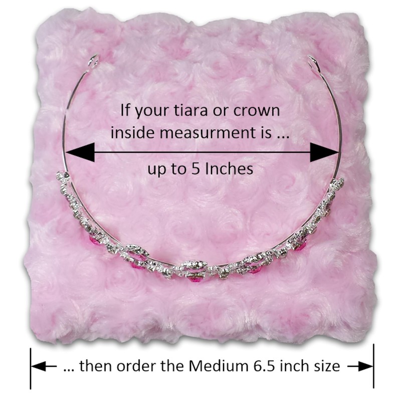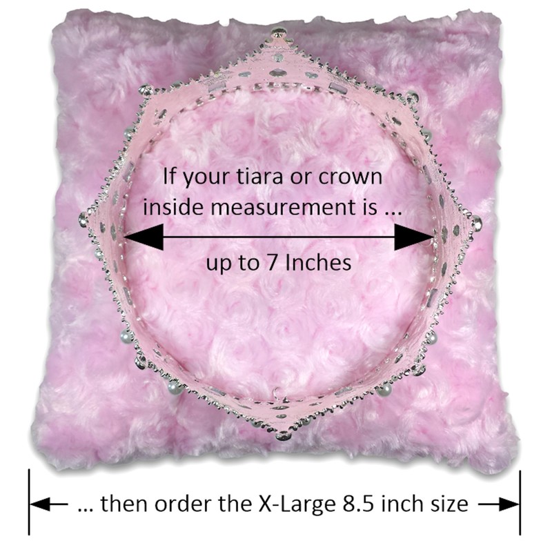 HINT: You can confirm that the pillow size you have selected is correct for your needs by cutting a piece of paper to 6 and 1/2 inches square, then place your tiara, crown or display item on the paper to check the fit.