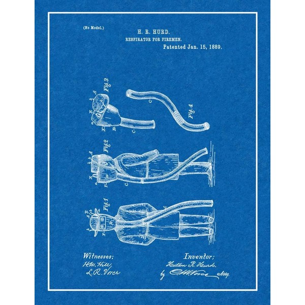 Respirator For Firemen Patent Print Blueprint with Border (5" x 7") M11071
