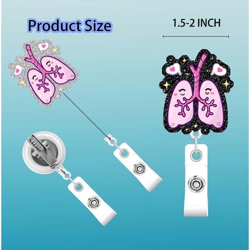 Respiratory Therapist Badge Reel Retractable for Nurse Cute Nursing ID Badge Holder Accessories with Alligator Clip Funny Lungs Anatomy Acrylic Badge Reel for Office Student Social Worker Hospital