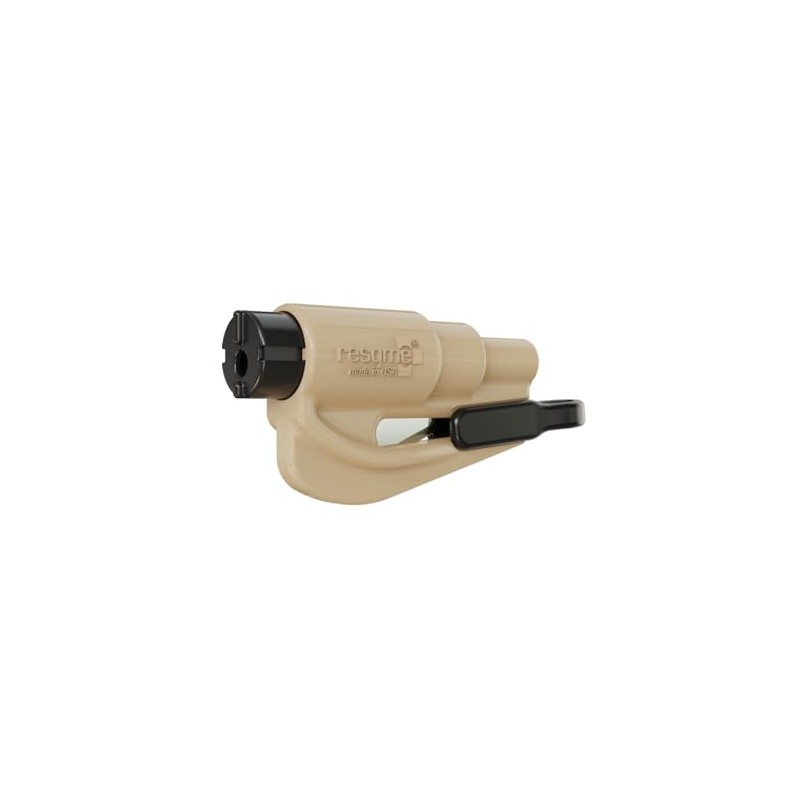 resqme The Original Emergency Keychain Car Escape Tool, 2-in-1 Seatbelt Cutter and Window Breaker, Made in USA, Sand - Compact Emergency Hammer