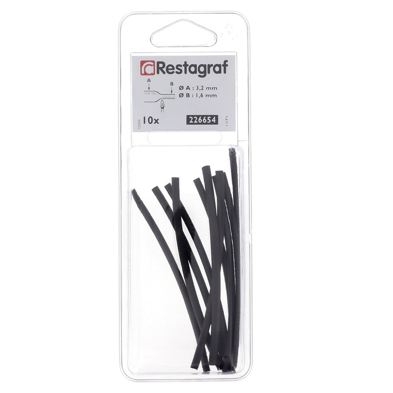 Restagraf Heat Shrink Tubing Black 1.6mm x 3.2mm x 10cm 226654