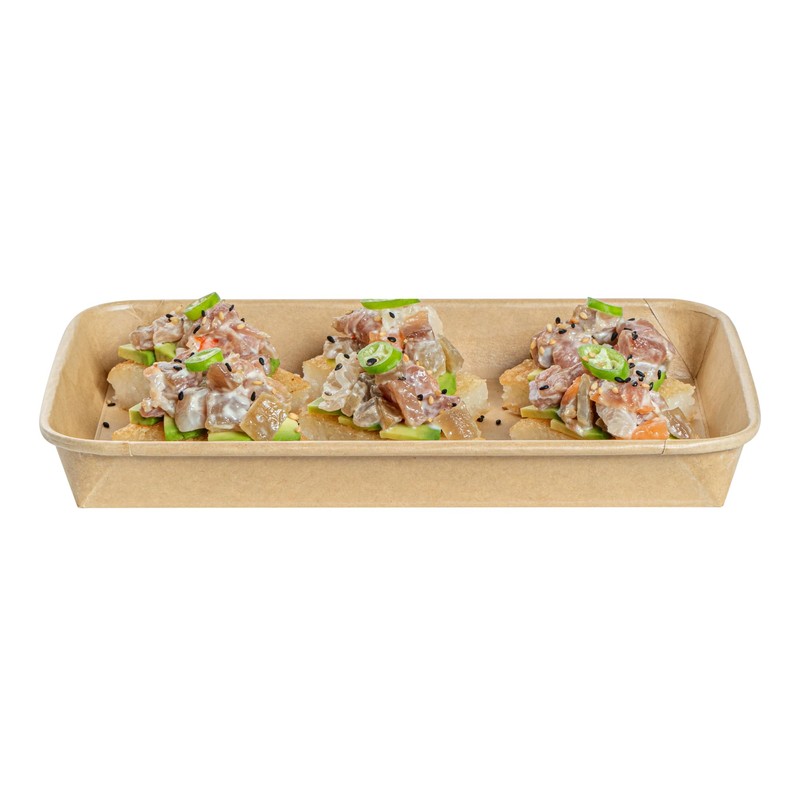Restaurantware Matsuri Vision 8.7 x 5.4 x 0.9 Inch Sushi Trays, 50 Greaseproof Sushi Packaging Boxes - Lids Sold Separately, Disposable, Kraft Paper Sushi Containers, For Appetizers Or Desserts