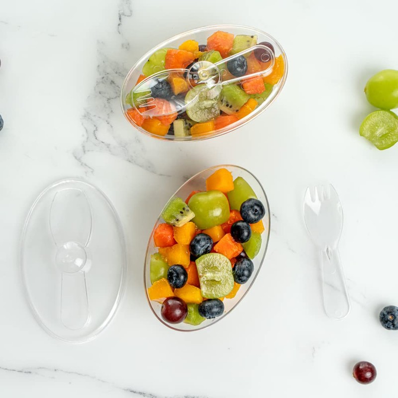 Restaurantware Deli Cup, Fruit Cup, Retail Cup with Lid and Spork - Oval - 4 oz - Premium Plastic - 100ct Box - Restaurantware
