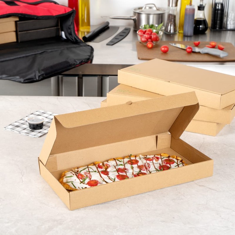 Restaurantware Eco Pie Kraft Paper Corrugated Flatbread Box - 14" x 7" x 1 1/2" - 50 count box