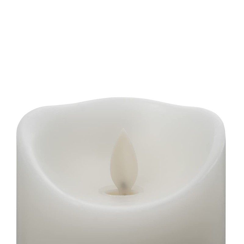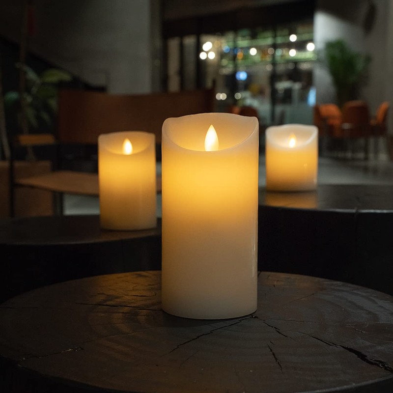 - PILLAR SHAPE: Add a lifelike touch to your centerpieces! This LED wax candle has a white finish and is designed to look like a melted pillar candle for an elegant touch to your arrangements.