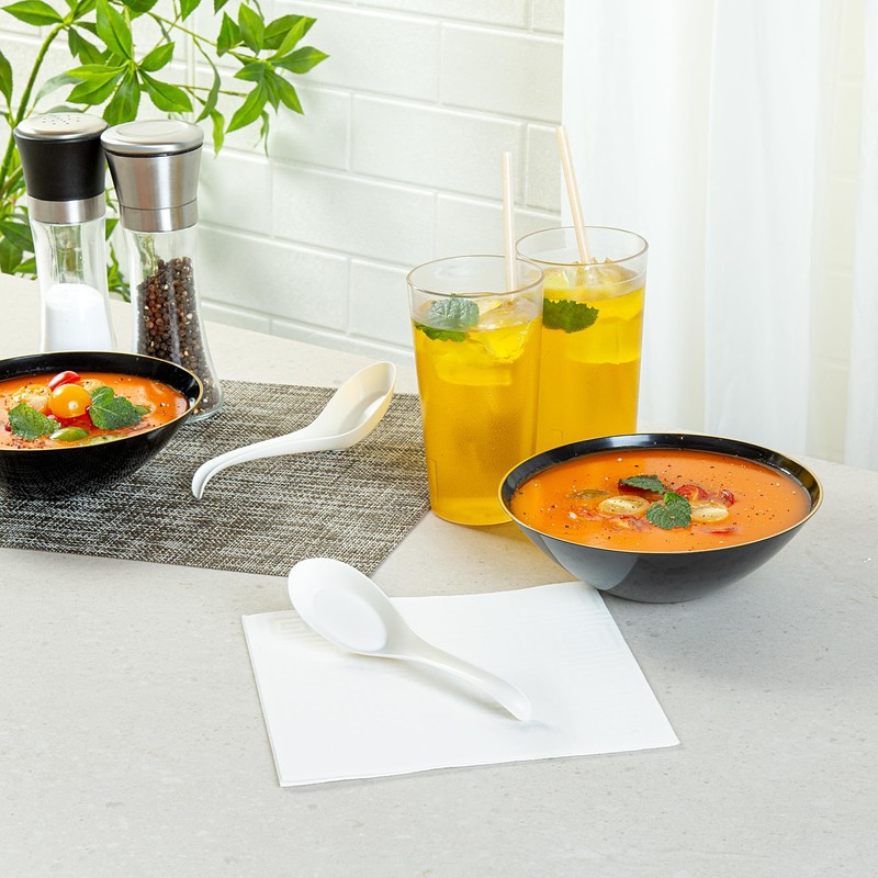 - PREMIUM PLASTIC: These Asian soup spoons are crafted from premium plastic and can withstand heat up to 200F and are ideal for enjoying hot piping meals. Slurp up steamy phos or ramen!
