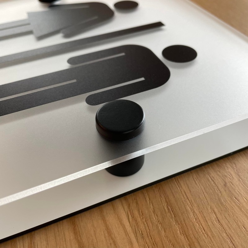 - Front plate is printed frosted acrylic, back plate is aluminum composite material