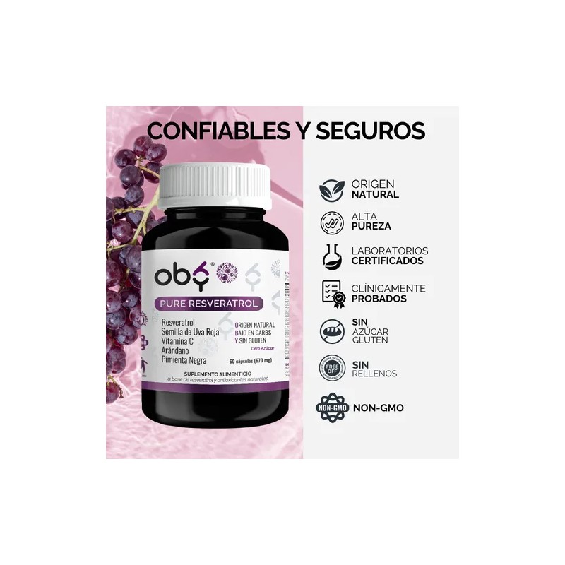 Resveratrol 100% Puro y Vegano Potenciado Pimienta Negra, Semilla Uva, Vitaminas y Arándano | Max Concentración Trans Resveratrol y Polifenoles Oby 60 Capsulas