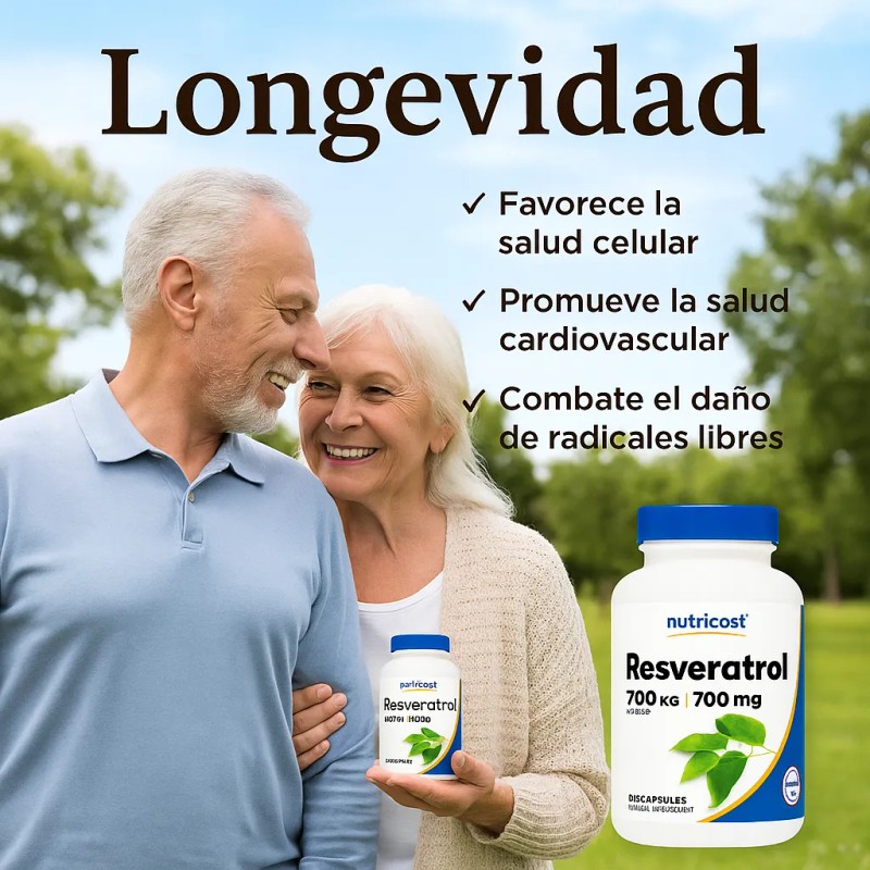resveratrol 700 mg cápsulas, suplemento antioxidante resveratrol, resveratrol importado sin sabor, cápsulas antioxidantes para salud, resveratrol para envejecimiento saludable, resveratrol para corazón y piel, resveratrol 120 cápsulas