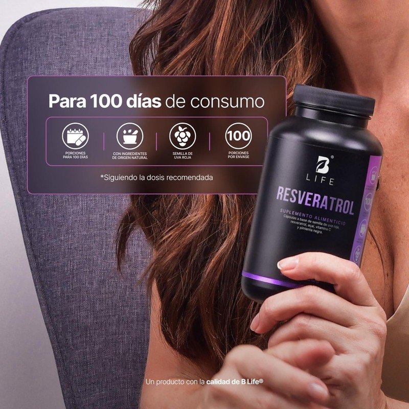 ¡Descubre el poder antioxidante del Resveratrol B Life! Esta exclusiva fórmula combina 1000 mg por porción de resveratrol, semillas de uva roja, açaí y vitamina C, enriquecida con pimienta negra para maximizar la absorción. Cada frasco contiene 200 cápsulas, asegurando hasta 3 meses de suministro. Ideal para adultos que buscan mejorar su salud celular y combatir los radicales libres.