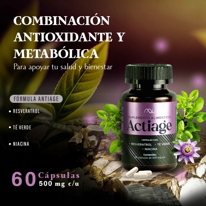 🌿💊 Resveratrol con Té Verde y Niacina | Actiage | Nutrinova es una poderosa fórmula antioxidante diseñada para proteger tu salud celular 🧬, aumentar tu energía diaria ⚡ y apoyar tanto tu sistema inmunológico 🛡️ como el cardiovascular ❤️.