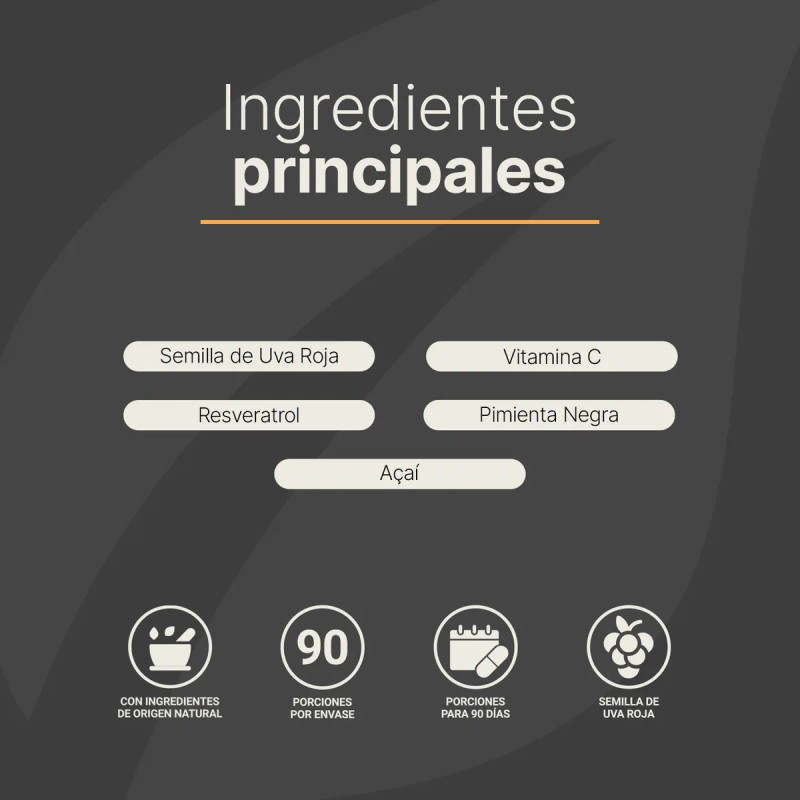 - Componente principal: semilla de uva roja.
