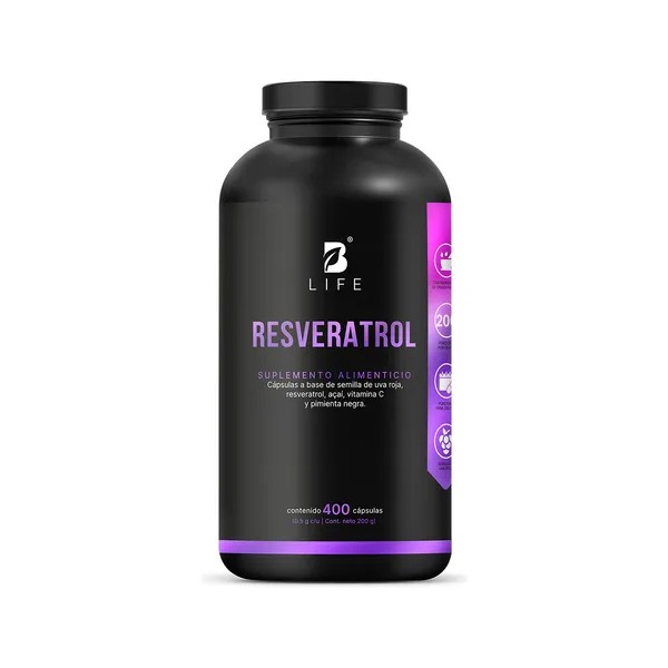 ¡Resveratrol B Life, un poderoso antioxidante! Cada cápsula de 500 mg contiene una formulación especial a base de resveratrol, semillas de uva roja, açaí y vitamina C. Esta exclusiva fórmula está enriquecida con pimienta negra, lo que potencia la absorción de los nutrientes.