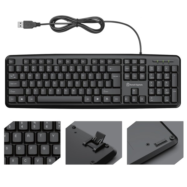 Retail Digitals Wired Keyboard | Full-Sized | Ergonomic | Spill Resistant | Soft Typing | QWERTY Layout | Black
